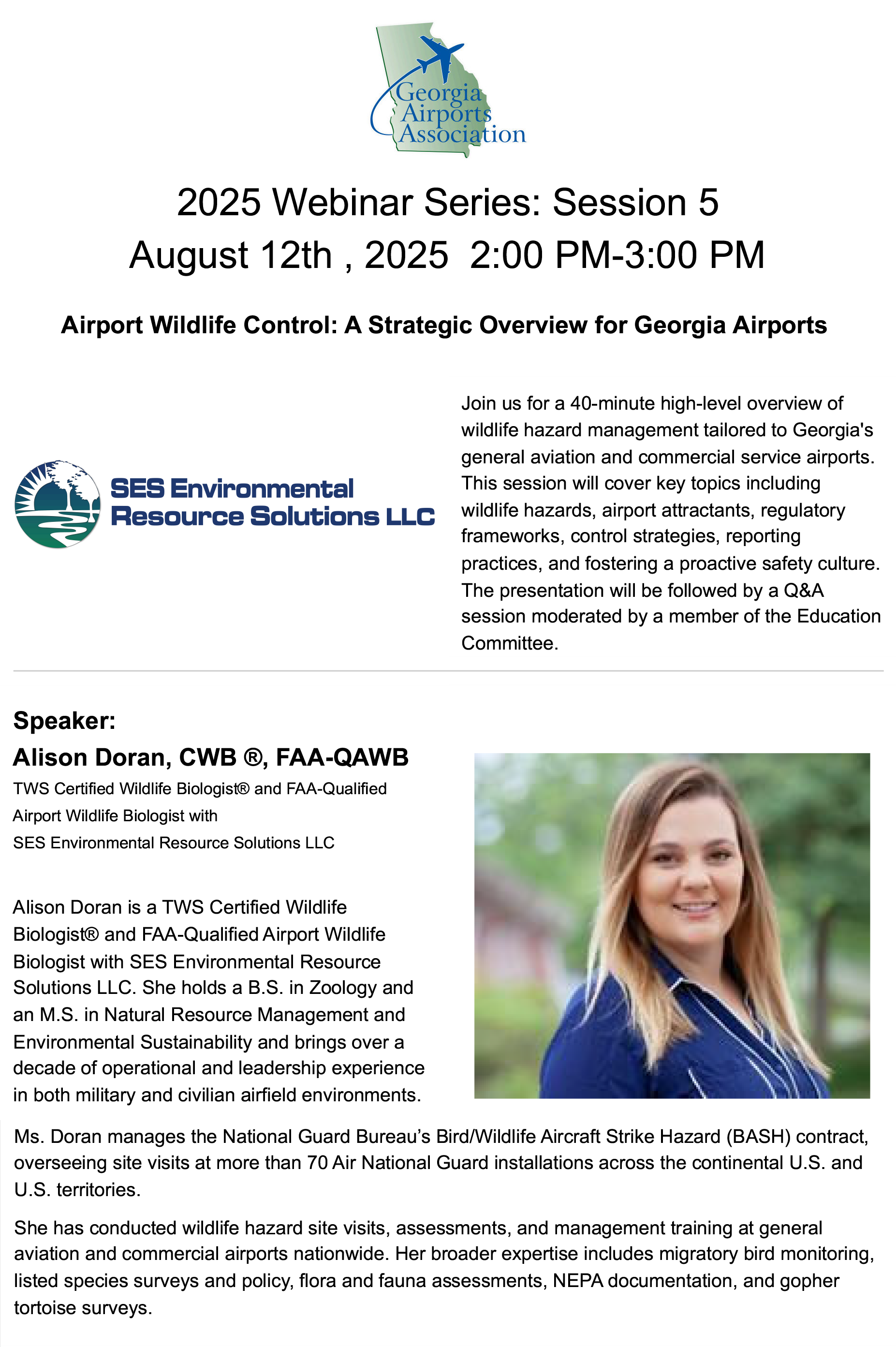 Rylan Juran Rylan Juran is the Aviation Planning Director for the Minnesota Department of Transportation’s Office of Aeronautics. He has been with MnDOT for 10 years and an Aviation Planner since 2005. He has a degree in Aviation Management from Embry-Riddle.Session 5 Tuesday August 29, 2023 2:00 - 3:00 p.m.Emergency Preparation & ResponseSession Resources: Matt Smith - Emergency Procedures Presentation.pptx Amber Clark - Airport Emergency Preparedness.pptxEmergency Plan Template - Gwinnett County.docxEmergency Plan Gwinnett County KLZU.pdfDOWNLOAD SESSION RECORDINGLeave feedback on session 5Speakers:Amber Clark, C.M.Airport Director - Columbus Airport (CSG) Amber Clark, C.M. has been the Airport Director for the Columbus Airport (CSG) since 2018. As Airport Director, Amber serves as the Chief Executive Officer responsible for the overall management and administration at CSG planning, directing, and coordinating the work of staff personnel as well as administering policies and directives of the Commission.Amber holds a Bachelor of Science Degree in Aviation Management from Florida Institute of Technology and received her Certified Member (C.M.) designation from the American Association of Airport Executives (A.A.A.E.) in March 2017 by completing an examination measuring her comprehensive knowledge of Airport Finance and Administration, Airport Planning, Construction and Environmental, Airport Operations, Security and Maintenance, Airport Communications and Community Relations.In 2016, Amber moved to Columbus from Kennesaw Georgia with her two children Jack (LJ) Clark and Cecilia (CC) Clark, to serve as the FBO Manager of Flightways, the Columbus Airport’s General Aviation terminal. She managed Flightways for three years overseeing the operations of Customer Service and Line Operations while making recommendations to the Airport Director and the Commission regarding improvements and development of the General Aviation Terminal.Prior to her work at Flightways, Amber served as the Customer Service Manager at the Cobb County International Airport in Kennesaw Georgia; a position that she held for three years where she sharpened her proficiency in FBO Management, Marketing, and Research.Since obtaining her private pilot’s certificate at the age of eighteen from Aero Atlanta Flight School at the Cobb County International Airport (KRYY), she has been very active in the industry completing her Commercial Pilot’s Certificate, along with her Instrument and Multi-Engine Rating with currently a little over 350 hours of flight time. Through an internship with Delta Air Lines, Amber also assisted in the merger of Northwest and Delta in 2008.Amber has been a member of the American Business Women’s Association for four years and is currently serving as President, of the Harris County Charter Chapter. Through her chapter, she was presented with the 2020 Protégée and Woman of the Year award; at the national level she has been recognized as a 2023 Top Ten Business Woman and was presented with the prestigious award of 2023 Business Women of the Year.Amber also serves as the Vice President and Education & Scholarship Committee Chair of the Georgia Airport Association (GAA), sits on the board for the Family Center, and was appointed by Governor Kemp to sit on the Georgia Aviation Hall of Fame Board. Amber is a member of the Rotary Club of Columbus and chairs the Career Day Committee which brings community business leaders, organizations, and local students together to discuss future opportunities within the community. Amber also volunteers her time serving as a Sunday school teacher for children at Christ the King Church located in Pine Mountain, Georgia.